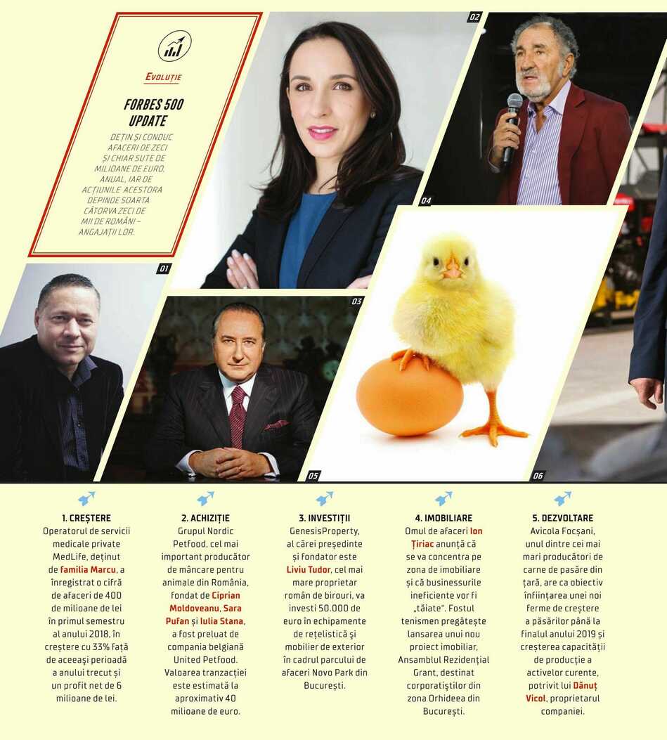 Evoluție FORBES 500 UPDATE DEȚIN Șl CONDUC AFACERI DE ZECI Șl CHIAR SUTE DE MILIOANE DE EURO, ANUAL, IAR DE ACȚIUNILE ACESTORA DEPINDESOARTA CÂTORVA ZECI DE MII DE ROMÂNIANOAJATU LOR.